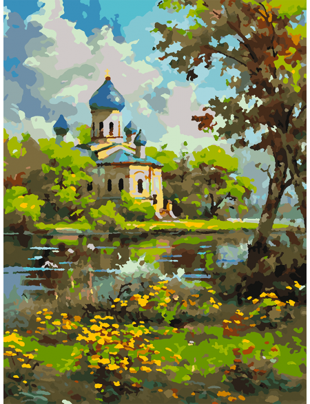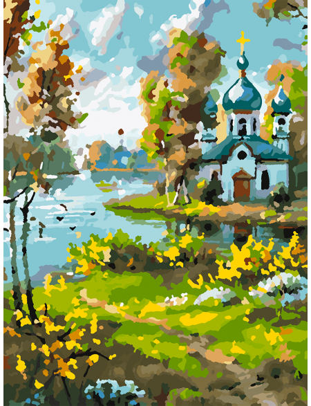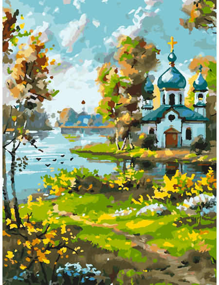 Картина по номерам без подрамника «Храм у реки» 25x20 см