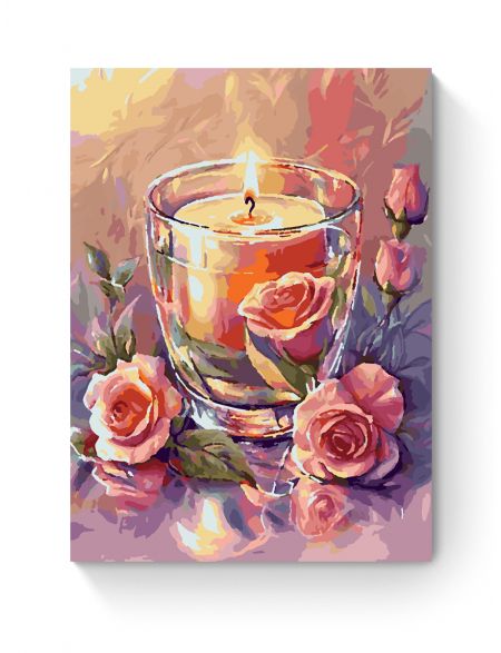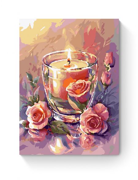 Картина по номерам без подрамника «Свеча и розы» 40x30 см