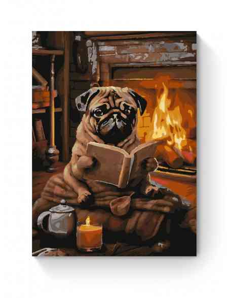 Картина по номерам на подрамнике «Мопс у камина» 35x25 см