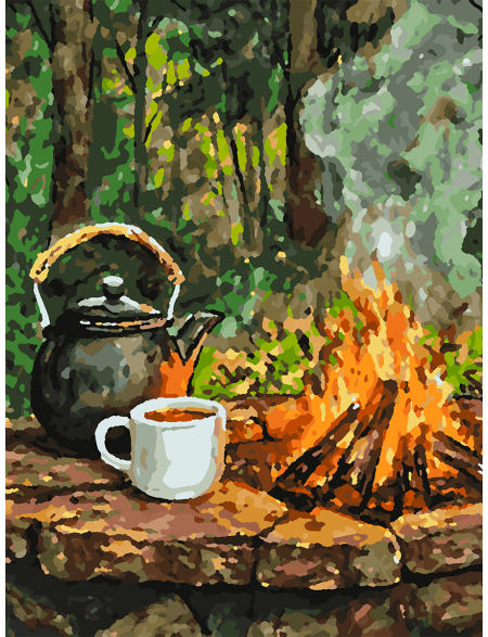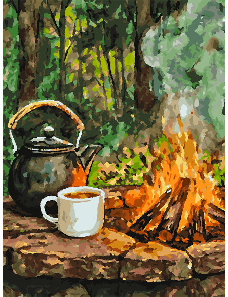 Картина по номерам без подрамника «Чай на костре» 40x30 см
