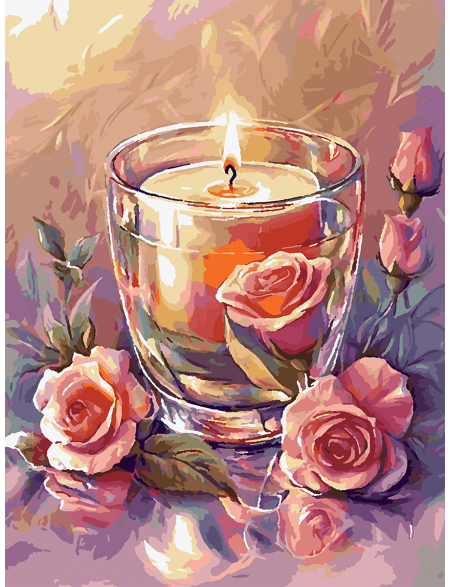 Картина по номерам без подрамника «Свеча и розы» 70x50 см