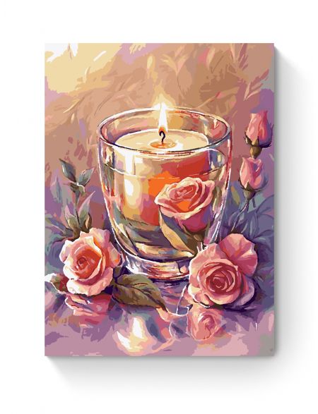 Картина по номерам на подрамнике «Свеча и розы» 70x50 см