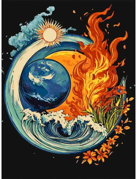 Картина по номерам без подрамника «Четыре стихии» 90x70 см