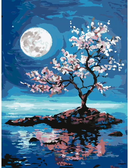 Картина по номерам без подрамника «Луна и сакура» 35x25 см