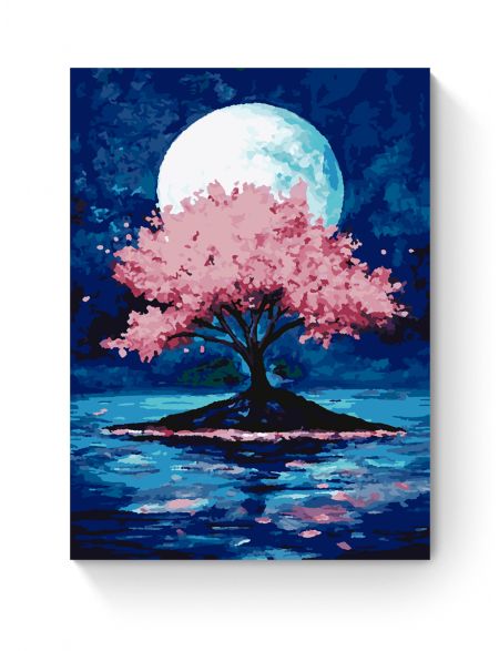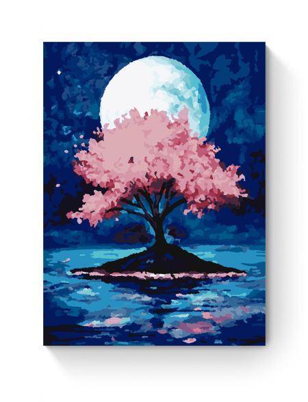 Картина по номерам без подрамника «Ночная сакура» 35x25 см