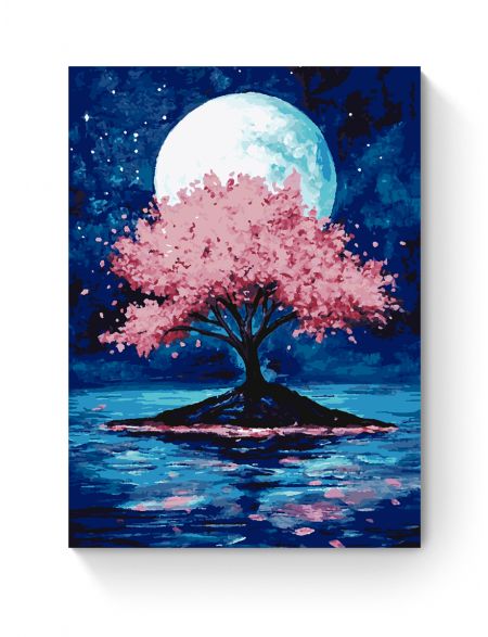 Картина по номерам без подрамника «Луна и сакура» 50x40 см