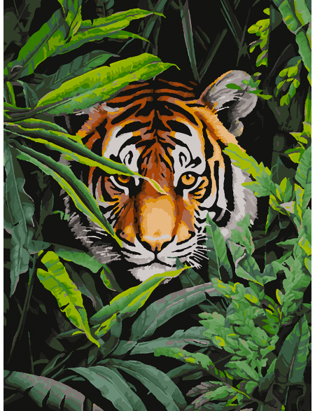Картина по номерам без подрамника «Тигр в засаде» 70x50 см
