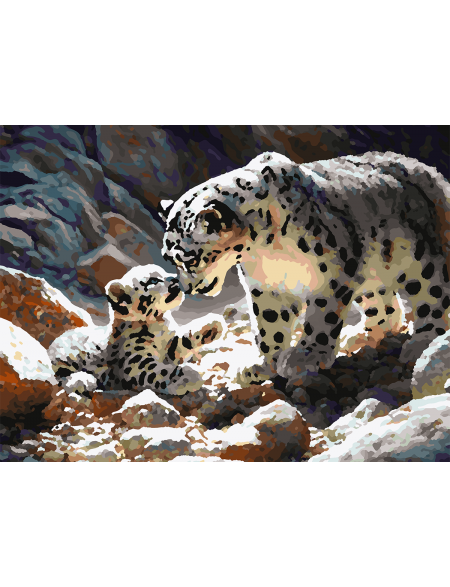 Картина по номерам без подрамника «Снежные барсы» 40x30 см