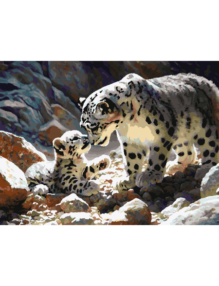 Картина по номерам без подрамника «Снежные барсы» 35x25 см