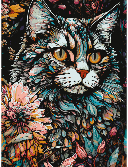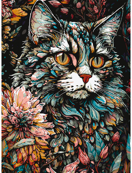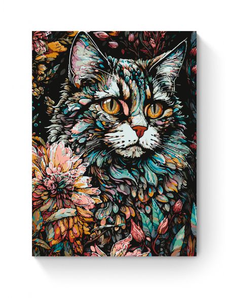 Картина по номерам без подрамника «Цветочный кот» 90x70 см