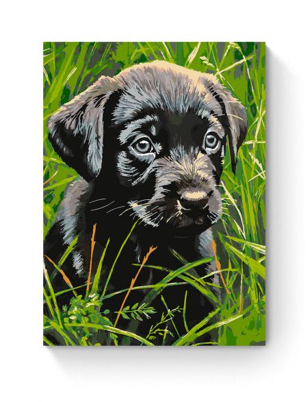 Картина по номерам на подрамнике «Черный щенок» 90x70 см