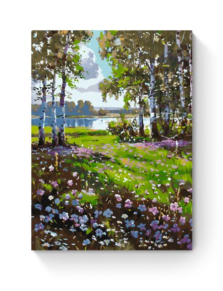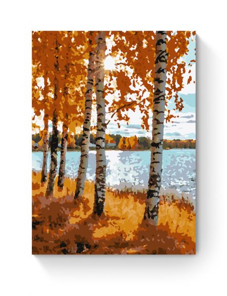 Картина по номерам на подрамнике «Березы у воды» 35x25 см