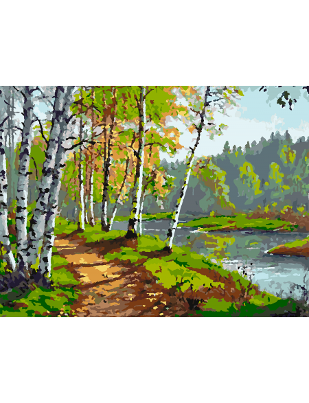 Картина по номерам без подрамника «Береза у реки» 50x40 см