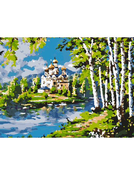 Картина по номерам без подрамника «Храм у реки» 40x30 см