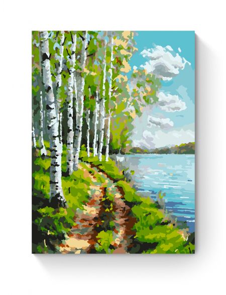 Картина по номерам без подрамника «Березы у воды» 25x20 см