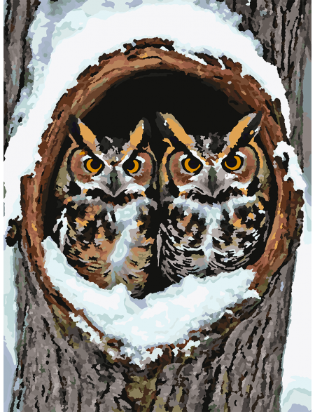 Картина по номерам без подрамника «Совы в дупле» 35x25 см