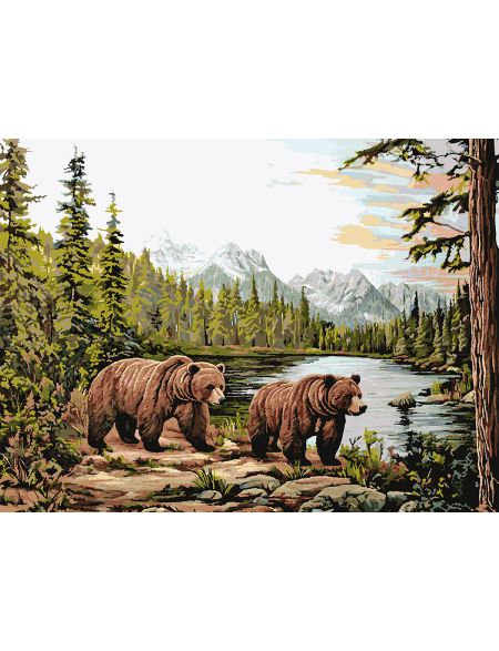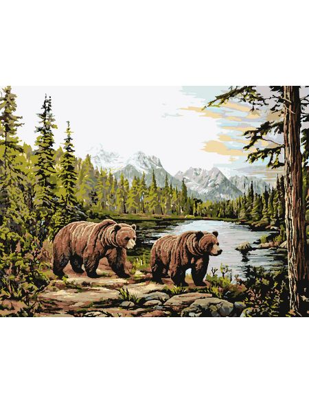 Картина по номерам без подрамника «Мишки в лесу» 80x60 см