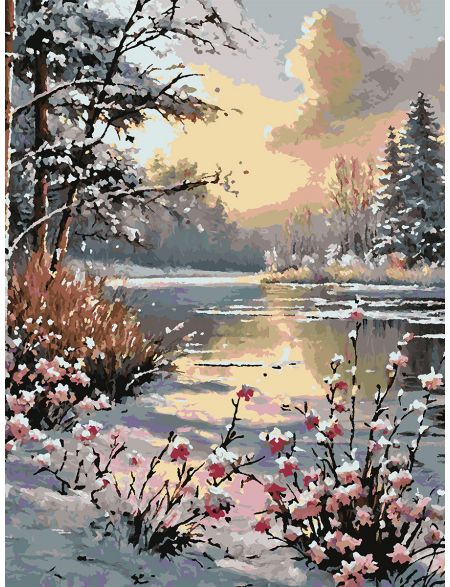 Картина по номерам без подрамника «Первый снег» 80x60 см