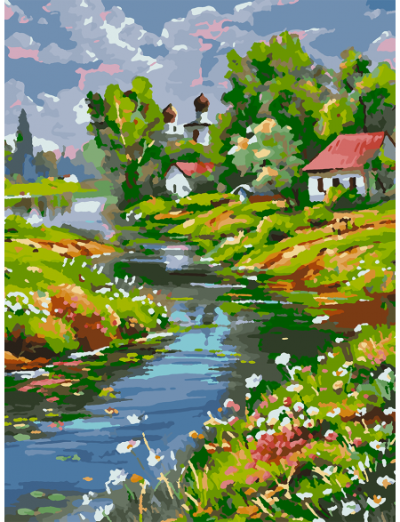 Картина по номерам без подрамника «Деревня летом» 50x40 см
