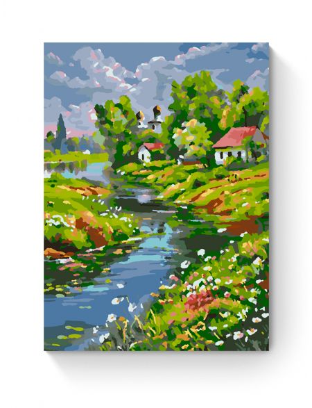 Картина по номерам на подрамнике «Деревня летом» 40x30 см