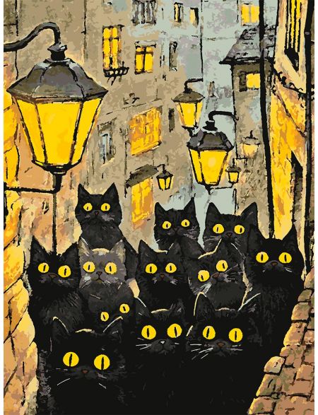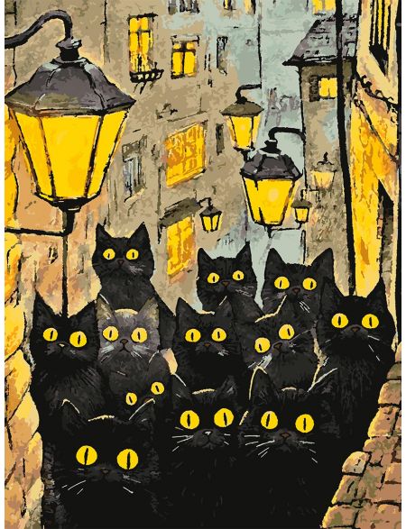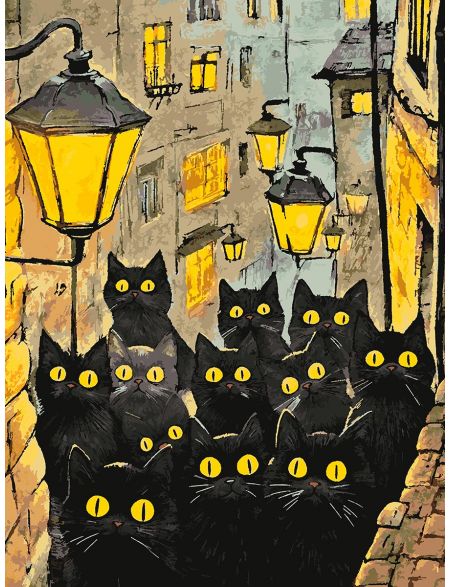 Картина по номерам без подрамника «Черные коты» 90x70 см