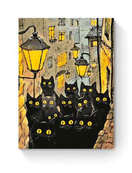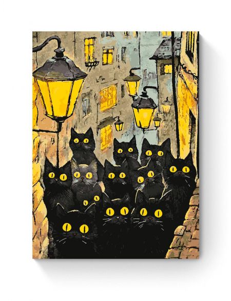Картина по номерам на подрамнике «Черные коты» 90x70 см