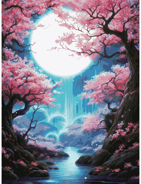 Картина по номерам без подрамника «Луна и сакура» 50x40 см