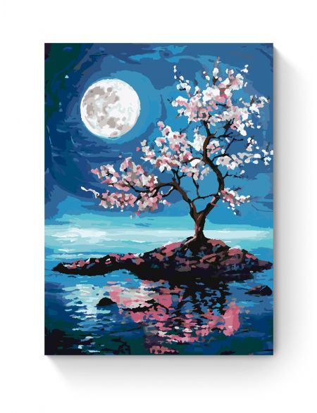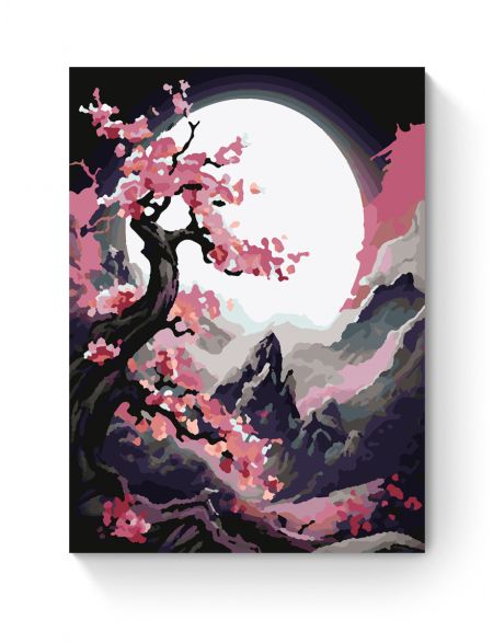 Картина по номерам на подрамнике «Луна и сакура» 40x30 см
