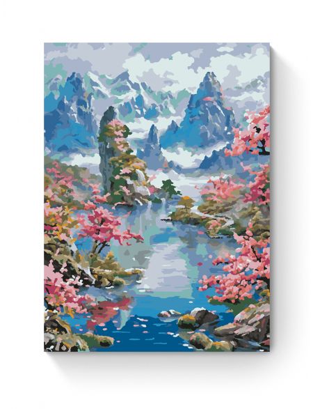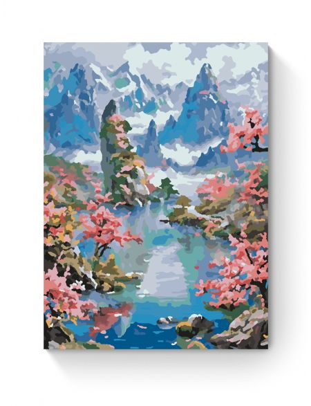 Картина по номерам на подрамнике «Сакура и горы» 35x25 см