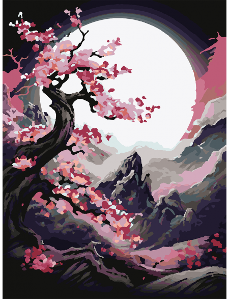Картина по номерам без подрамника «Луна и сакура» 40x30 см