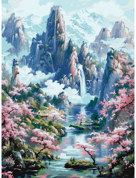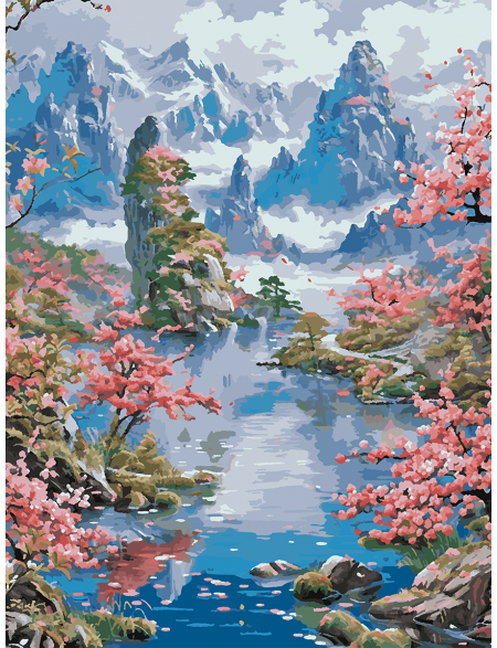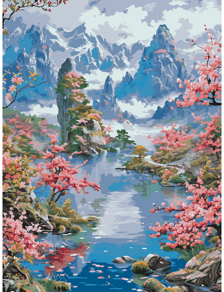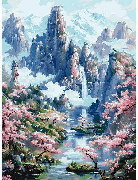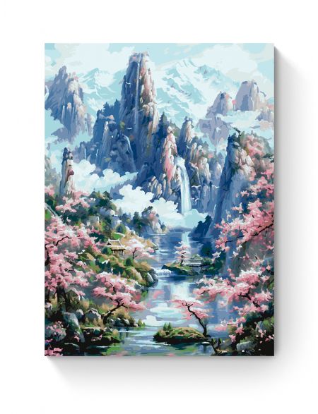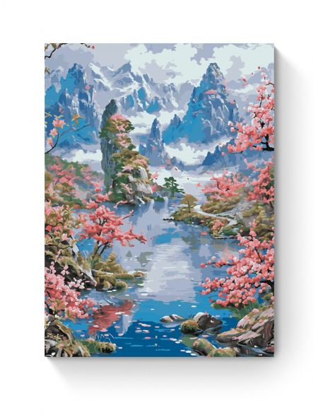 Картина по номерам на подрамнике «Сакура и горы» 90x70 см