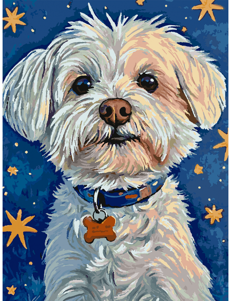 Картина по номерам без подрамника «Белая болонка» 70x50 см