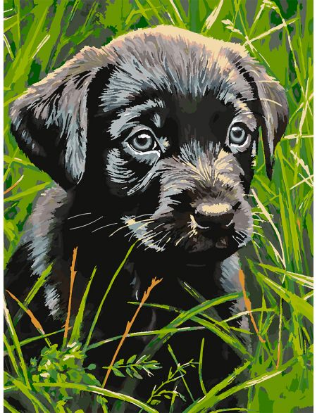 Картина по номерам без подрамника «Черный щенок» 130x100 см