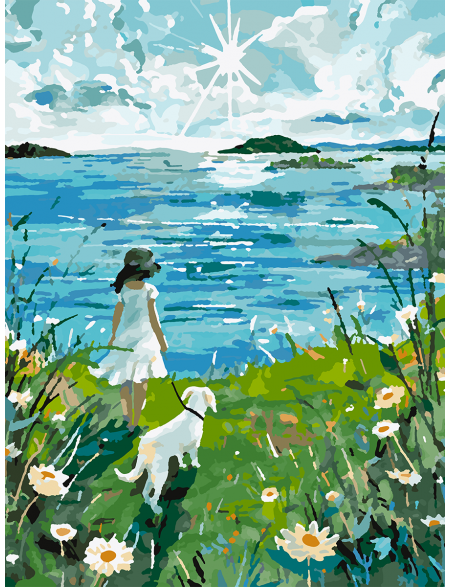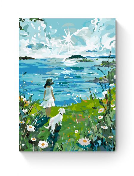 Картина по номерам без подрамника «Девочка и пёс» 70x50 см
