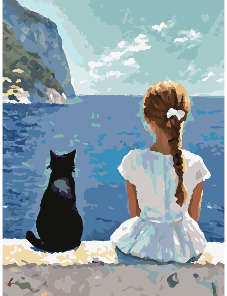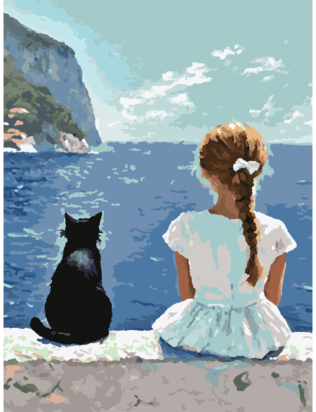 Картина по номерам без подрамника «Кот и девочка» 35x25 см