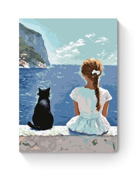 Картина по номерам на подрамнике «Кот и девочка» 70x50 см