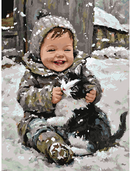 Картина по номерам без подрамника «Кот и девочка» 25x20 см