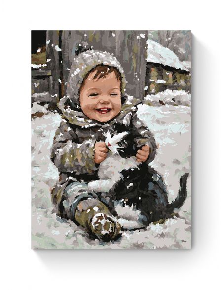 Картина по номерам на подрамнике «Кот и девочка» 35x25 см
