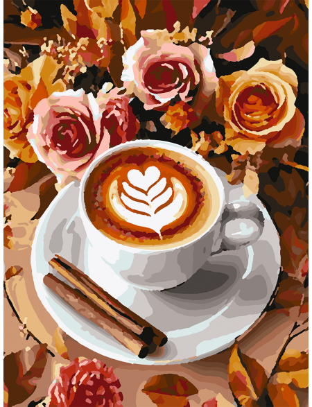 Картина по номерам без подрамника «Кофе и розы» 40x30 см