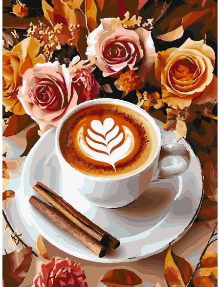 Картина по номерам без подрамника «Кофе и розы» 70x50 см