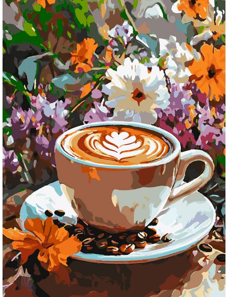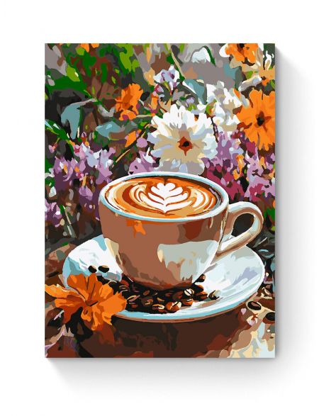 Картина по номерам без подрамника «Цветы и латте» 70x50 см