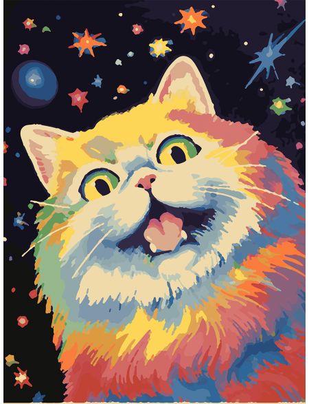 Картина по номерам без подрамника «Цветной кот» 50x40 см