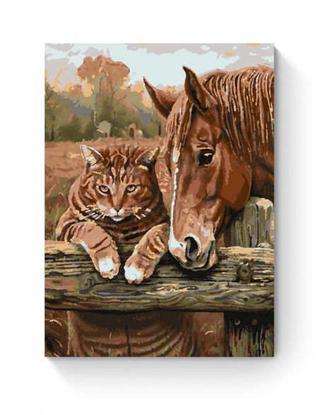 Картина по номерам на подрамнике «Кот и лошадь» 50x40 см