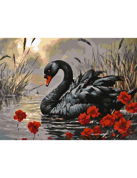Картина по номерам без подрамника «Черный лебедь» 70x50 см
