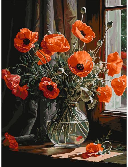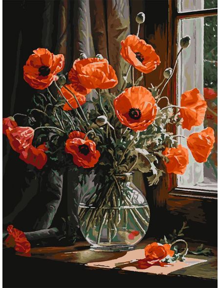 Картина по номерам без подрамника «Маки в вазе» 130x100 см