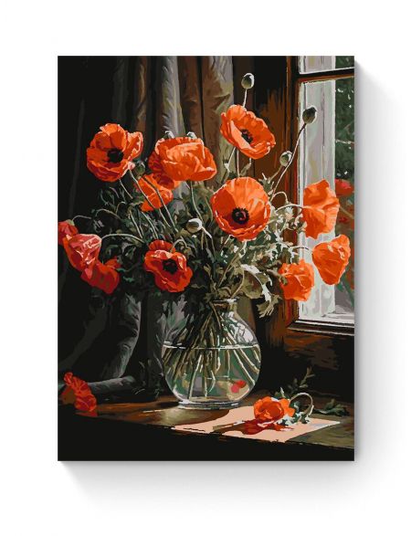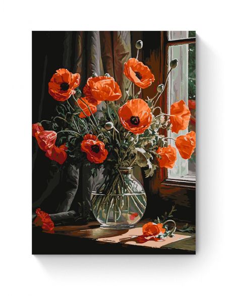 Картина по номерам на подрамнике «Маки в вазе» 80x60 см