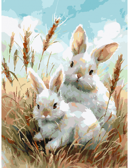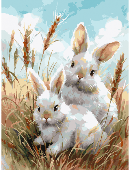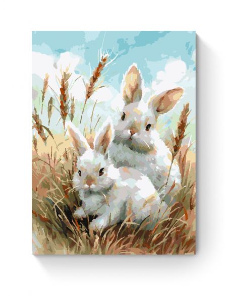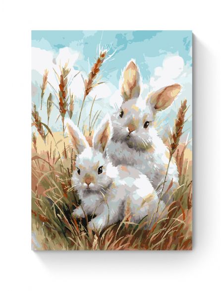 Картина по номерам на подрамнике «Белые кролики» 35x25 см