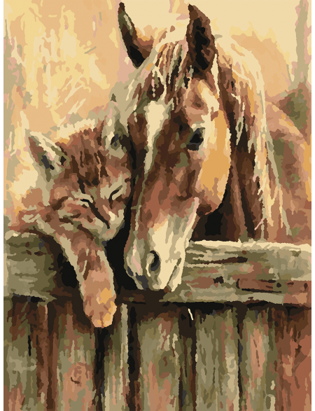 Картина по номерам на подрамнике «Кот и лошадь» 80x60 см