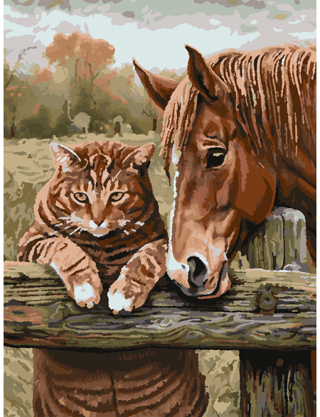 Картина по номерам без подрамника «Кот и лошадь» 35x25 см