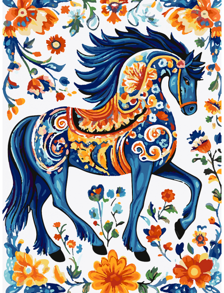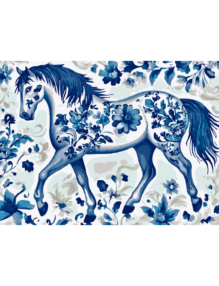 Картина по номерам без подрамника «Конь гжель» 70x50 см
